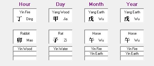 Note: Beyonce was born in the Grey area, but her correct Four Pillars of Destiny chart is exactly the one above – which is according to the lunar calendar. In my article “What is Chinese Astrology” I have given links for free calculators so that everyone can calculate their own BaZi chart with both the solar and lunar calendar and note if there is a difference. If there is, then you were born in the Grey area.