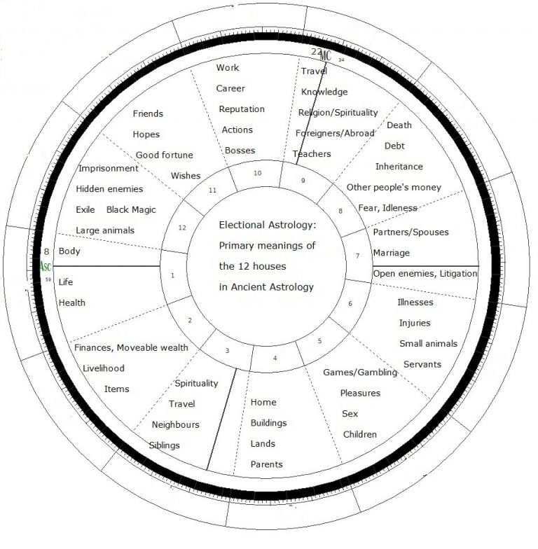 These are the primary meanings of the 12 houses in Ancient Astrology. As you can see, one can choose a date and time for almost anything with this branch